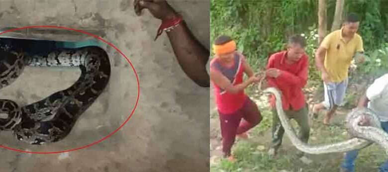 छत्तीसगढ़-पेण्ड्रा में घर में अजगर देख घबराया परिवार, सर्पमित्र ने किया रेस्क्यू