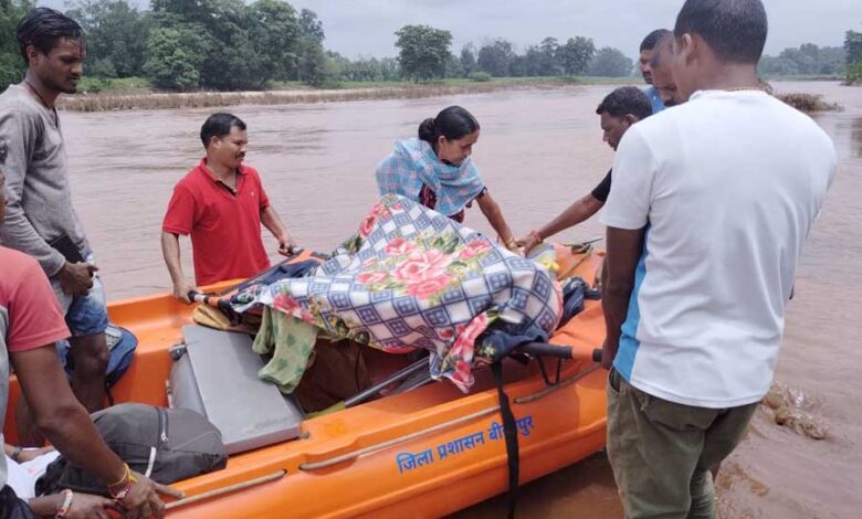 नदी पर जल स्तर बढ़ जाने पर नगर सेना की टीम ने गर्भवती महिला को सुरक्षित अस्पताल पहुंचाया