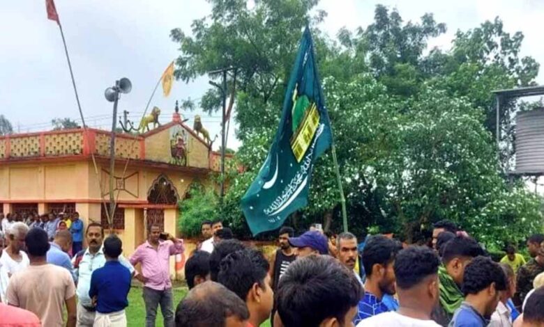 गिरिडीह में दुर्गा मंदिर के सामने गाड़ दिया इस्लामिक झंडा, फिर तनाव