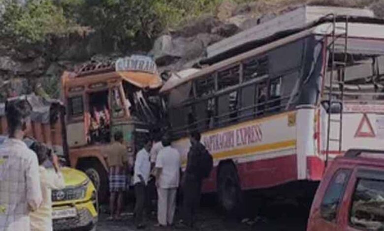 आंध्र प्रदेश के चित्तूर जिले के पालमानेर में बेंगलुरु-तिरुपति राजमार्ग पर शुक्रवार को एक भीषण सड़क हादसा हुआ है। यह हादसा मोगिली घाट के पास हुआ, जहां दो लॉरी एक बस से टकरा गईं। इस हादसे में आठ लोगों की मौत हो गई और 30 अन्य घायल हो गए हैं। पुलिस का कहना है कि मृतकों की संख्या अभी और बढ़ सकती है। हादसे के कारणों की जांच की जा रही है। यात्री बस बेंगलुरु से तिरुपति की ओर जा रही थी। हादसे की सूचना मिलते ही पुलिस और बचाव दल की टीम मौके पर पहुंची।