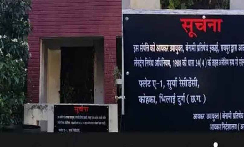 आयकर विभाग ने इस सूर्या रेसीडेंसी के प्लाट A1 और A22 संपत्ति को आयकर उपायुक्त के द्वारा बेनामी प्रतिबंध इकाई रायपुर द्वारा आदेश बेनामी संपत्ति लेनदेन निषेध अधिनियम 1988 की धारा 24/4 के तहत अनंतिम रूप से संलग्न किया गया है। यह आदेश आयकर उपायुक्त बेनामी प्रतिषेध इकाई रायपुर और आयकर निदेशालय (अन्वेषण) रायपुर के द्वारा चस्पा किया गया है। आपको बता दें कि पूर्व मुख्यमंत्री भूपेश बघेल की उपसचिव रह चुकी सौम्या चौरसिया कथित कोल स्कैम घोटाला और मनी लांड्रिंग के मामले में पिछले 16 महीनों से रायपुर जेल में बंद है। इसके पूर्व प्रवर्तन निदेशालय के द्वारा जांच की जा रही थी। सूर्या रेसीडेंसी के ब्लॉक ए के मकान नंबर 103 में अब तक ED के द्वारा चस्पा किए गए नोटिस को नही हटाया गया है। कोल स्कैम और मनी लांड्रिंग मामले में ED के द्वारा सौम्या चौरसिया सहित सूर्यकांत तिवारी, सुनील अग्रवाल IAS रानू साहू और समीर बिश्नोई,को भी अलग अलग तारीख को गिरफ्तार किया गया है। ED के द्वारा अब तक इन मामलों में 222 करोड रुपए की संपत्ति अटैच की है।