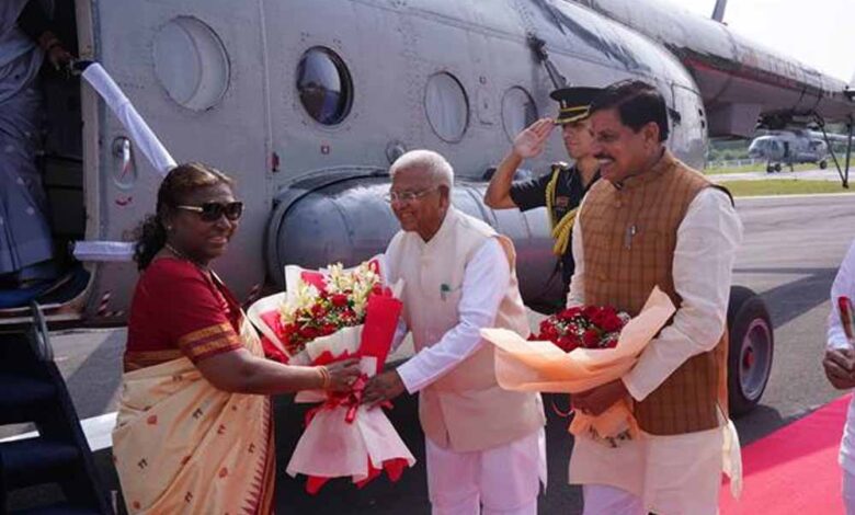 राज्यपाल पटेल, मुख्यमंत्री डॉ. यादव ने राष्ट्रपति श्रीमती द्रौपदी मुर्मु की अगवानी