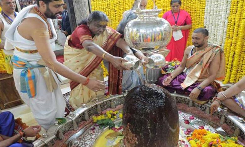 राष्ट्रपति श्रीमती द्रौपदी मुर्मु ने महाकाल मंदिर में दर्शन कर पूजन अर्चन किया, नन्दी मण्डप में ध्यान भी किया