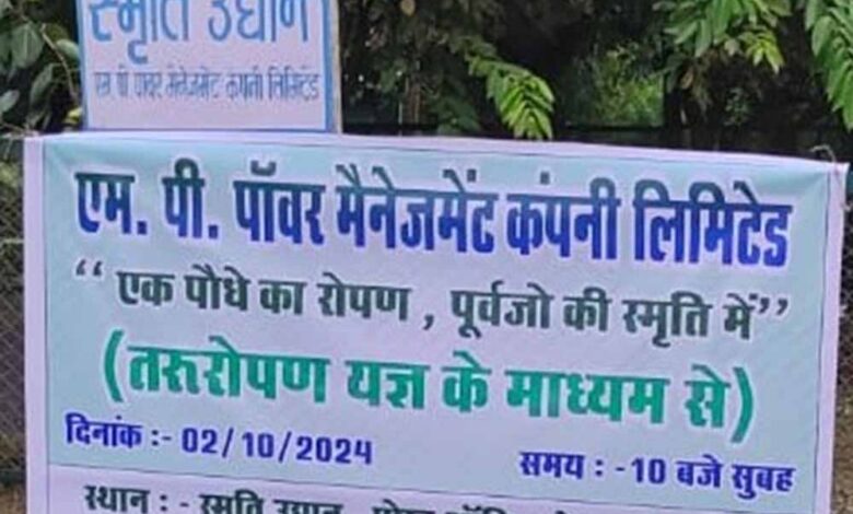 एमपी पावर मैनेजमेंट कंपनी के द्वारा 2 अक्टूबर को गांधी जयंती और श्राद्ध पक्ष के अवसर पर तरूरोपण यज्ञ ‘एक पौधे का रोपण, पूर्वजों की स्मृति में’ कार्यक्रम का आयोजन किया जायेगा। तरूरोपण यज्ञ में जबलपुर स्थित सभी विद्युत कंपनियों के कार्मिक परिजन की स्मृति में एक पौधा लगाएंगे। कार्यक्रम का आयोजन रामपुर स्थित आवासीय परिसर में स्मृति उद्यान में किया जायेगा।