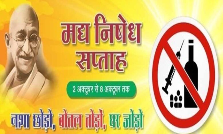 महात्मा गांधी की जयंती के अवसर पर मध्यप्रदेश में 2 से 8 अक्टूबर तक मद्य निषेध सप्ताह का आयोजन किया जा रहा