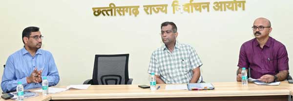 आयुक्त श्री सिंह ने कहा कि चुनावी प्रक्रिया के प्रत्येक चरण की नियमित समीक्षा की जाएगी और जरूरत पड?े पर तत्काल सुधारात्मक कदम उठाए जाएंगे। उन्होंने मतदाता जागरूकता अभियान को प्रभावी बनाने के लिए विभिन्न माध्यमों का उपयोग करने पर जोर दिया। इस अवसर पर सामान्य प्रशासन विभाग के सचिव श्री अन्बलगन पी., नगरीय प्रशासन एवं विकास विभाग के सचिव श्री बसवराजू एस. आयोग के सचिव डॉ. सर्वेश्वर नरेन्द्र भूरे, उप सचिव डॉ. नेहा कपूर एवं श्री आलोक श्रीवास्तव भी उपस्थित थे।