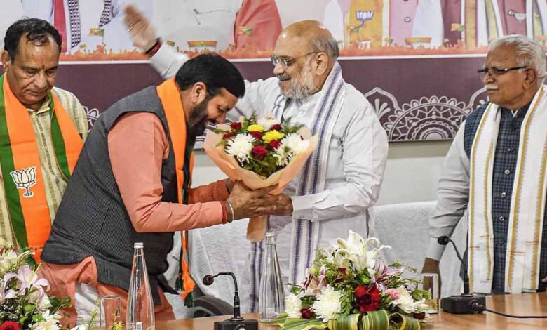 हरियाणा में भाजपा लगातार तीसरी बार सरकार बनाने जा रही है। पार्टी की विधायक दल की मीटिंग में बुधवार को नायब सिंह सैनी को नेता चुन लिया गया। अब वह सरकार गठन का दावा करेंगे और गुरुग्राम को पंचकूला में शपथ लेंगे। नायब सैनी को नेता चुने जाने की जानकारी अमित शाह ने दी और कहा कि भाजपा के खिलाफ भ्रांति फैलाई गई थी कि किसानों से अन्याय हो रहा है। अमित शाह ने कहा, 'यह भ्रांति फैलाई गई कि किसानों से अन्याय हुआ। मैं आज विपक्ष से कहना चाहता हूं कि पूरे देश में यदि कोई राज्य 24 फसलों को एमएसपी पर खरीदता है तो वह भाजपा के शासन वाला हरियाणा है।'