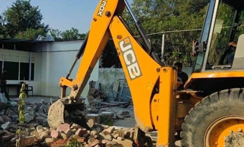 पूर्व स्पेशल डीजी पुरुषोत्तम शर्मा व कांग्रेस नेता समेत तीन लोगों के द्वारा किए गए अतिक्रमण पर बुलडोजर चला
