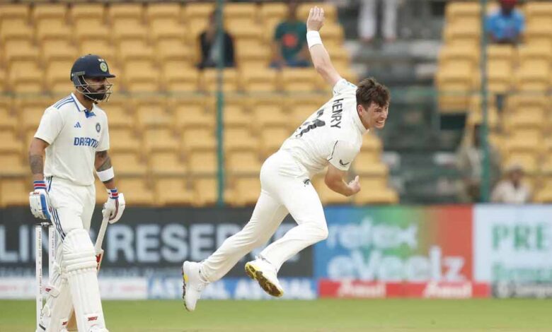 मैट हेनरी और विलियम ओ’रुर्के ने गुरुवार को एम चिन्नास्वामी स्टेडियम में पहले टेस्ट के दूसरे दिन गुरूवार को सामूहिक रूप से नौ विकेट चटकाए और भारत को सिर्फ 46 रन पर आउट कर दिया। इसके साथ ही भारत ने घरेलू मैदान पर अपना सबसे कम स्कोर और कुल मिलाकर तीसरा सबसे कम टेस्ट स्कोर दर्ज किया है।