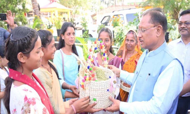 हितग्राहियों ने मुख्यमंत्री को सुख- समृद्धि की कामना के साथ धान की बालियां उपहार स्वरूप भेंट की