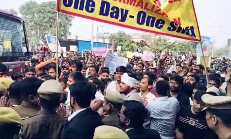 नॉर्मलाइजेशन के खिलाफ आज प्रयागराज में छात्रों का बड़ा प्रदर्शन, बैरिकेडिंग टूटी