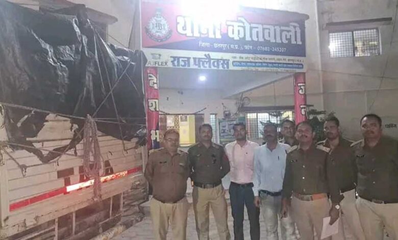छतरपुर पुलिस द्वारा जिले के समस्त थाना क्षेत्र अंतर्गत नशा मुक्ति अभियान के तहत निरंतर कार्यवाही की जा रही है। अवैध शराब विक्रेता, संग्रह एवं परिवहन करने वाले आरोपियों को गिरफ्तार किया जा रहा है। आज थाना कोतवाली पुलिस को फोरलेन ओवर ब्रिज के पास महोबा रोड में शराब परिवहन की सूचना प्राप्त हुई। थाना कोतवाली पुलिस त्वरित कार्यवाही करते हुए संबंधित स्थान पहुँची। महोबा रोड फोरलेन ओवर ब्रिज के पास एक टाटा 407 ट्रक मिला, रोक कर चेक किया गया। तिरपाल से ढकी भारी मात्रा में अवैध शराब की पेटियां रखी थी, वैध दस्तावेज चालक से मांगे गए, नहीं मिले। सनी कंपनी की अंग्रेजी व्हिस्की कुल 400 पेटी करीब 3600 लीटर शराब, कीमत करीब 27 लाख मिली।