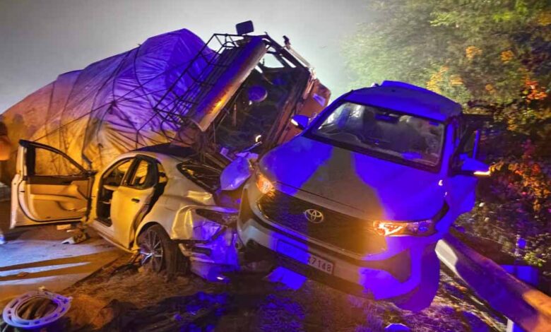 कुंडा के भक्ति धाम मनगढ़ के संस्थापक जगदगुरु कृपालु महाराज की तीनों बेटियां भक्ति धाम कृपालु परिषद की अध्यक्ष 72 वर्षीय डॉ. विशाखा त्रिपाठी, 68 वर्षीय डॉ. कृष्णा त्रिपाठी और 66 वर्षीय डॉ. श्यामा त्रिपाठी शनिवार रात दो गाड़ियों से दिल्ली जा रही थीं। आगे वाली गाड़ी में विशाखा के साथ वृंदावन के व्यवस्थापक संजय और महिला सेवादार थी। व्यवस्थापक संजय ही गाड़ी चला रहे थे। पीछे वाली गाड़ी में कृष्णा और श्यामा थीं। गाड़ी को सेवादार दीपक चला रहे थे। आगरा से आगे यमुना एक्सप्रेसवे पर नोएडा के दनकौर थाना क्षेत्र में रात करीब 3:00 बजे पीछे से आए एक कैंटर ने दोनों गाड़ियों को ओवरटेक किया और अचानक अनियंत्रित होकर पहली गाड़ी पर पलट गया। इसी बीच पीछे से आ रही दूसरी गाड़ी उसी में घुस गई।