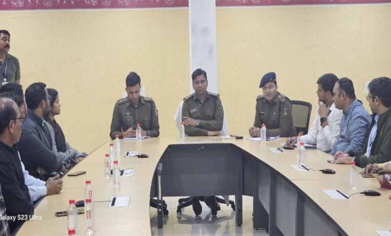 SP डॉ. संतोष कुमार सिंह ने आज सिविल लाइन स्थित सी-04 भवन के सभाकक्ष में विभिन्न बैंकों के ब्रांच मैनेजरों और अधिकारियों के साथ एक महत्वपूर्ण बैठक की. बैठक के दौरान शहर में बैंक सुरक्षा और साइबर अपराध रोकने के उपायों पर चर्चा की गई. बैठक में अतिरिक्त पुलिस अधीक्षक लखन पटले, नगर पुलिस अधीक्षक अजय कुमार और थाना प्रभारी रोहित मालेकर भी मौजूद रहे.