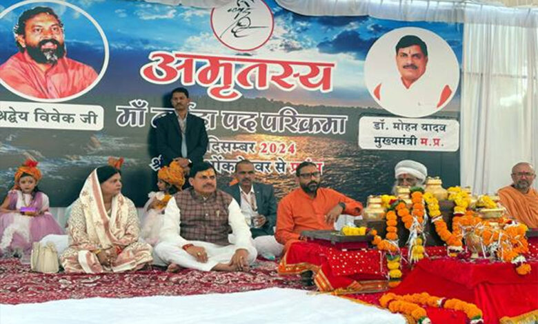 मुख्यमंत्री ओंकारेश्वर में आयोजित अमृतस्य मां नर्मदा पद परिक्रमा कार्यक्रम में हुए शामिल