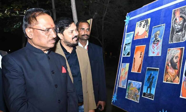 मुख्यमंत्री श्री साय ने इस अवसर पर अकादमी के छात्र-छात्राओं द्वारा बनाई गई पेंटिग और फाईन आर्ट की कलाकृतियों की प्रदर्शनी का भी अवलोकन किया।