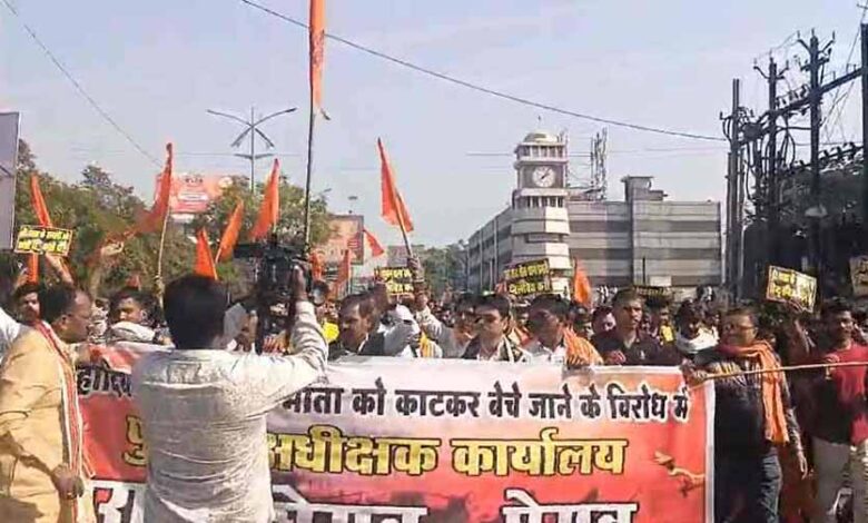 गौकशी और गौ तस्करी के विरोध में सर्व हिंदू समाज ने किया प्रदर्शन, गौ हत्या बंद हो…’ के नारों से गूंजा रायपुर