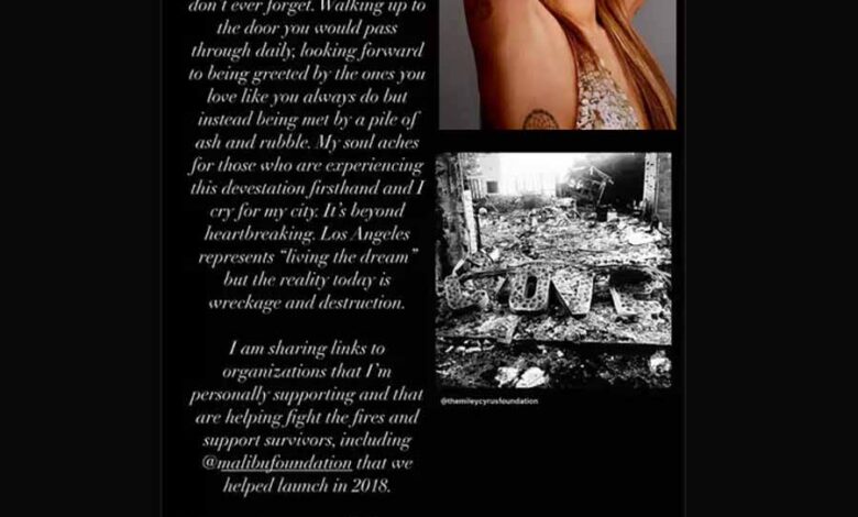 माइली साइरस ने लॉस एंजेलिस में लगी भीषण आग के बीच एक इमोशनल पोस्ट किया शेयर