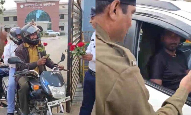 गरियाबंद मुख्यालय में यातायात शाखा ने चलाया जागरूकता अभियान, पुलिस ने हेलमेट पहने चालकों को दिया गुलाब फूल