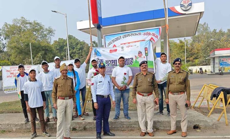 राष्ट्रीय सड़क सुरक्षा माह के तहत उमरिया पुलिस का जागरूकता अभियान