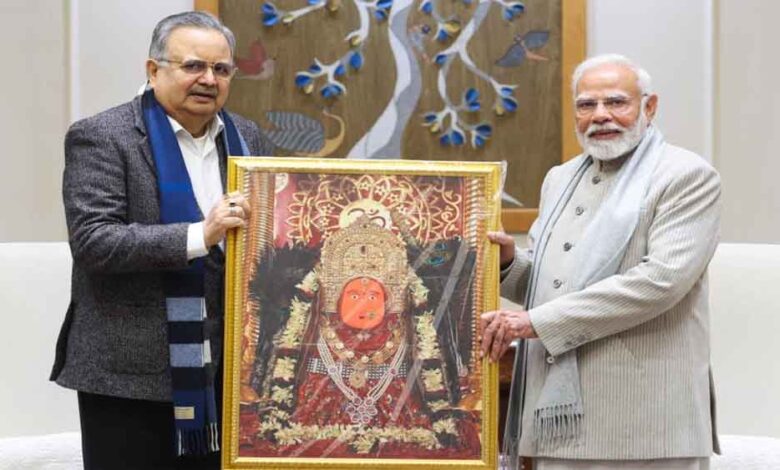छत्तीसगढ़-विस अध्यक्ष डॉ रमन सिंह मिले PM मोदी से, मां बमलेश्वरी का छायाचित्र भेंटकर दिया न्योता