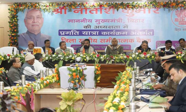 मुख्यमंत्री श्री नीतीश कुमार ने आज प्रगति यात्रा के तीसरे चरण में सहरसा जिले में चल रही विकासात्मक योजनाओं के संबंध मेंप्रमंडलीय सभागार (कोशी प्रमंडल), सहरसा में समीक्षात्मक बैठक की।समीक्षात्मक बैठक में सहरसा के जिलाधिकारी श्री वैभव चौधरी ने जिले के विकासकार्यों का प्रस्तुतीकरण के माध्यम से विस्तृत जानकारी दी।