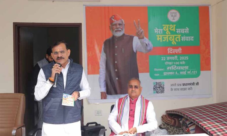 विष्णुदत्त शर्मा ने रविवार को दिल्ली में पार्टी कार्यकर्ताओं की बैठक कर घर-घर जनसंपर्क कर भाजपा को वोट देने की अपील