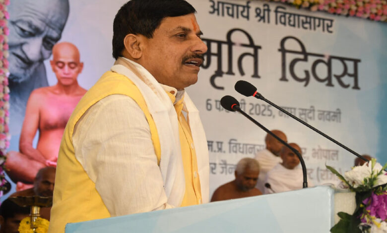 सीएम बोले- आचार्य विद्यासागर देवता के रूप में विद्यमान हो गए कार्यक्रम के दौरान सीएम मोहन यादव ने कहा, आचार्य विद्यासागर महाराज के भीतर जो मानव सेवा का भाव रहा है उसके चलते वो जीते जी देवता के रूप में हम सब के बीच विद्यमान हो गए।
