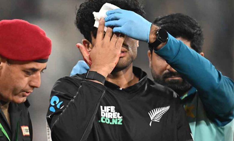 त्रिकोणीय क्रिकेट सीरीज का पहला मैच पाक और न्यूजीलैंड के बीच गद्दाफी क्रिकेट स्टेडियम में खेला गया, लेकिन इस मैच में कीवी टीम के रविंद्र बुरी तरह से चोटिल हो गए। सोशल मीडिया पर यह दावा किया जा रहा है कि रचिन को यह चोट खराब फ्लड लाइट्स के कारण लगी, जिसकी वजह से वह कैच को सही तरह से देख नहीं पाए और गेंद उनके आंख के बिल्कुल पास में आकर लगी। गेंद लगते ही खून निकलने लगा और उनका चेहरा लहूलुहान हो गया। इसके बाद फौरन उन्हें मैदान से बाहर लेकर जाया गया। इस मैच में न्यूजीलैंड क्रिकेट टीम ने पाक को उसी की धरती पर 78 रनों से हरा दिया। मैच में न्यूजीलैंड ने टॉस जीतकर पहले बल्लेबाजी करते हुए कीवी टीम ने ग्लेन फिलिप्स के पहले एकदिवसीय शतक से 50 ओवर में 6 विकेट पर 330 रन बनाये। इसके बाद लक्ष्य का पीछा करते हुए मेजबान पाकिस्तान की टीम फखर जमान के 84 रनों सहायता से 47.5 ओवर में 252 रन ही बना पाई।