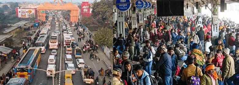 प्रयागराज में लगा महाजाम, संगम में स्नान के लिए हजारों की संख्या में आ रहे श्रद्धालु