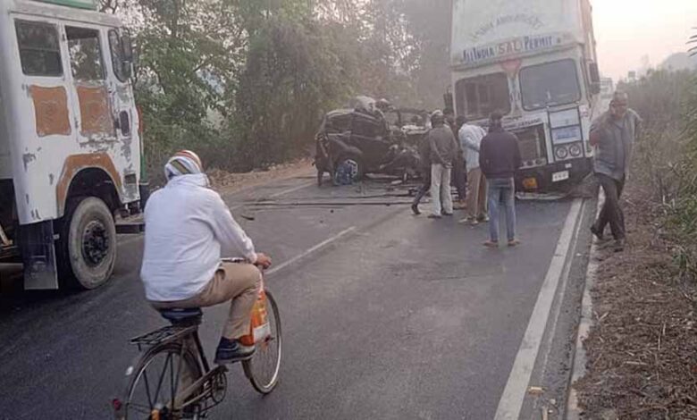 यूपी के बस्ती में भीषण सड़क हादसा : कंटेनर और कार की भीषण टक्कर, पांच की मौत