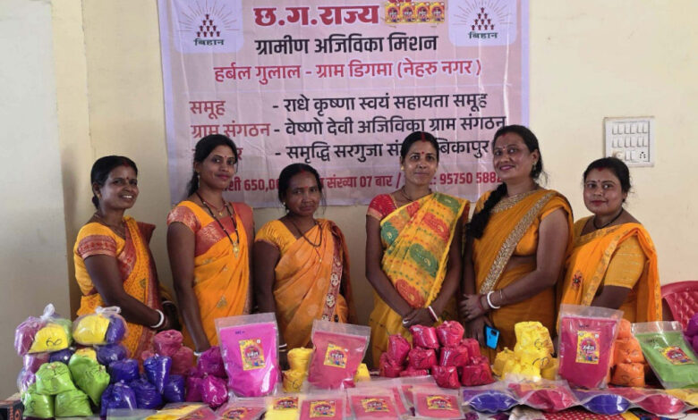छत्तीसगढ़ राज्य ग्रामीण आजीविका मिशन (बिहान) के तहत महिलाओं को आत्मनिर्भर बनाने की दिशा में महत्वपूर्ण कार्य किए जा रहे हैं। इसी क्रम में अम्बिकापुर ब्लॉक के ग्राम पंचायत डिगमा की राधे कृष्णा स्वयं सहायता समूह की महिलाएं हर्बल गुलाल का निर्माण कर अपनी अलग पहचान बना रही हैं। उनका यह प्रयास न केवल आर्थिक स्वावलंबन की दिशा में एक कदम है, बल्कि लोगों को रासायनिक मुक्त और प्राकृतिक रंगों से सुरक्षित होली मनाने का भी अवसर दे रहा है।