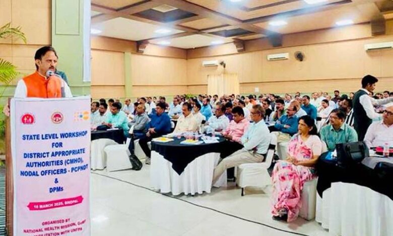 उप मुख्यमंत्री श्री शुक्ल ने कहा कि टीम वर्क, स्वास्थ्य विभाग के अधिकारियों और कर्मचारियों की सक्रिय भागीदारी और एकजुट प्रयासों से मध्यप्रदेश को स्वास्थ्य के क्षेत्र में शीर्ष स्थान पर पहुंचाने का लक्ष्य शीघ्र पूरा होगा। मिशन संचालक एनएचएम डॉ. सलोनी सिडाना ने बताया कि दो दिवसीय कार्यशाला में मातृ एवं शिशु स्वास्थ्य, पीसीपीएनडीटी अधिनियम, हाई रिस्क प्रेग्नेंसी प्रबंधन एवं स्वास्थ्य सेवाओं में नवाचार को लेकर गहन मंथन किया गया है। स्वास्थ्य सेवाओं के बेहतर और विधिवत प्रदाय, समयबद्ध चिन्हाकन, नियमित जाँच और फॉलोअप सेवा से मातृ मृत्यु दर और शिशु मृत्यु दर में सुधार के सशक्त प्रयास किये जायेंगे।कार्यशाला में प्रदेश के सभी जिलों के मुख्य चिकित्सा एवं स्वास्थ्य अधिकारी, पीसीपीएनडीटी नोडल अधिकारी, जिला स्वास्थ्य अधिकारी, डीपीएम, विभागीय अधिकारी और सलाहकारों ने भाग लिया।