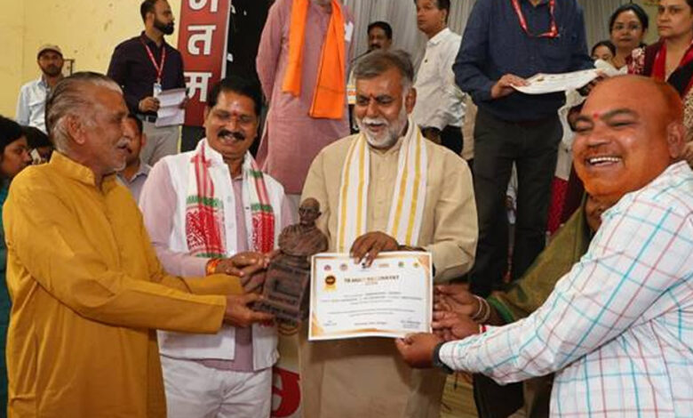 पंचायत एवं ग्रामीण विकास और श्रम मंत्री प्रहलाद सिंह पटेल के मुख्य आतिथ्य में टीबी मुक्त ग्राम पंचायत सम्मान समारोह कार्यक्रम पीजी कॉलेज नरसिंहपुर के आॉडिटोरियम में हुआ। मंत्री पटेल ने वर्ष 2024 के लिए जिले की टीबी मुक्त 161 ग्राम पंचायतों को प्रमाण पत्र एवं राष्ट्रपिता महात्मा गांधी जी की प्रतिमा प्रदान कर सम्मानित किया।