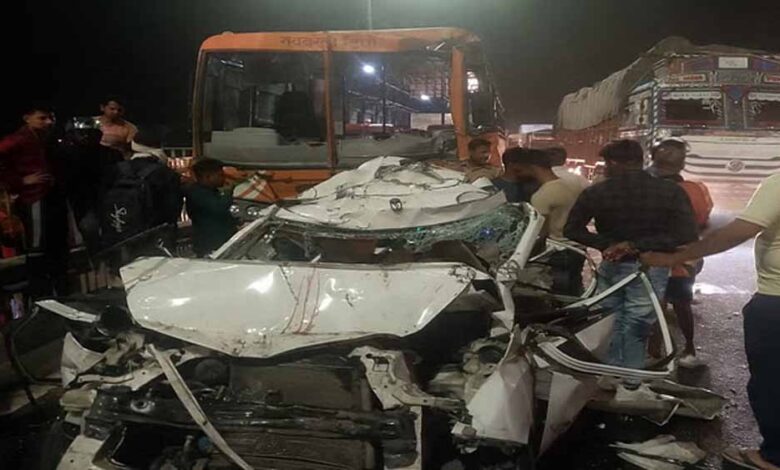 इस दौरान मेटाडोर के चालक ने बाहर निकलकर खुद को बचाया। वहीं बस का चालक भी मौके से भाग निकला। हादसे के बाद हाईवे पर जाम लग गया। सूचना पर सिकंदरा पुलिस मौके पर पहुंच गई। कार बुरी तरह बस और मेटाडोर के बीच फंस गई थी। इसे निकालने के लिए क्रेन को मौके पर बुलाना पड़ा।