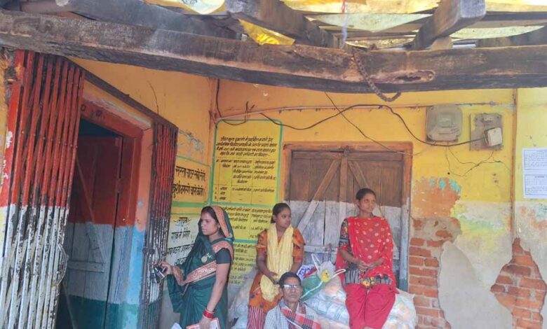 जान जोखिम में डालकर राशन लेने पहुंच रहे ग्रामीण, जर्जर भवन में संचालित है राशन दुकान