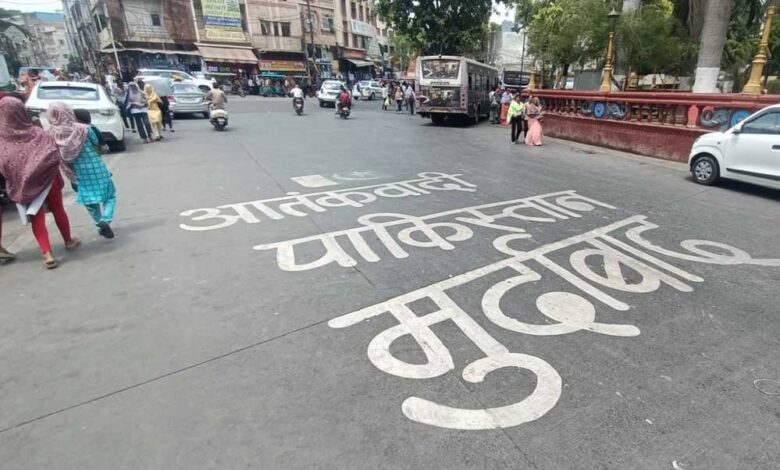 इंदौर में पहलगाम में हुए आतंकी हमले के बाद पाकिस्तान के प्रति लोगों का आक्रोश बढ़ा, सड़कों पर लिखा- आतंकवादी पाकिस्तान मुर्दाबाद…