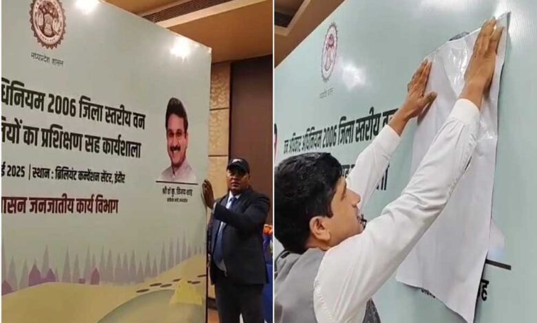 पूरा घटनाक्रम इंदौर के ब्रिलियंट कन्वेंशन सेंटर के फीनिक्स हॉल का है। यहां गुरुवार को ट्रेनिंग प्रोग्राम रखा गया। इसमें अशासकीय सदस्यों, वन अधिकारी समिति के सदस्यों को प्रशिक्षण दिया गया। इस दौरान वर्कशॉप के लिए पोस्टर लगाए गए। जिसमें, सीएम मोहन यादव के साथ मंत्री विजय शाह की फोटो लगी थी। इस वर्कशॉप कार्यक्रम में इंदौर उज्जैन के कलेक्टर, वन के मंडल अधिकारी, मुख्य कार्यपालन अधिकारी मौजूद थे। वहीं, कार्यक्रम जनजाति कार्य विभाग ने आयोजित कराया था। इसके मंत्री विजय शाह हैं। इसी कार्यक्रम से फोटो हटाई गई।