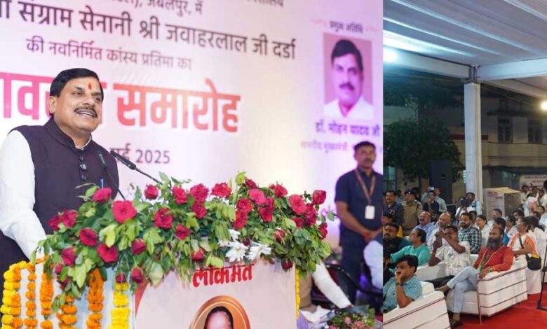 मुख्‍यमंत्री डॉ. मोहन यादव ने सेठ गोविंददास शासकीय जिला चिकित्‍सालय जबलपुर पहुंचकर वरिष्‍ठ स्‍वतंत्रता संग्राम सेनानी जवाहरलाल दर्डा की कांस्‍य प्रतिमा का अनावरण किया। उन्‍होंने कहा कि जवाहरलाल दर्डा ने स्‍वतंत्रता संग्राम में महत्‍वपूर्ण योगदान दिया और जबलपुर से उनका गहरा नाता रहा है। जबलपुर में दर्डा ने स्‍वास्‍थ्‍य सेवाओं के विस्‍तार की दिशा में भी उल्‍लेखनीय कार्य किया। उन्‍होंने कहा कि स्‍वतंत्रता संग्राम के दौरान जबलपुर से नेताजी सुभाषचंद्र बोस का भी गहरा नाता रहा है। उन्‍होंने अंग्रेजों के दम्‍भ को तोडा़ और 23 वर्ष की उम्र में आईसीएस की परीक्षा पास की जिस समय अंग्रेज भारतीयों के ज्ञान स्‍तर को कम आंकते थे। महात्‍मा गांधी ने भी अफ्रीका से स्‍वतंत्रता की लड़ाई की शुरूआत कर एक नई दिशा दी। स्‍वतंत्रता संग्राम में कई महान विभूतियों ने अपना अमूल्य योगदान दिया। मुख्यमंत्री डॉ. यादव ने कहा कि मध्‍यप्रदेश के झाबुआ से चंद्रशेखर आजाद ने भी कभी अंग्रेजों की अधीनता नहीं स्‍वीकारी और उन्‍होंने स्‍वयं को जीते जी आजाद रहने का संकल्‍प पूरा किया। दर्डा ने आजादी की लड़ाई लड़ी और स्‍वतंत्रता के बाद महाराष्‍ट्र के कई मंत्रालयों में 23 वर्ष तक कई जिम्‍मेदारियों का निर्वहन कर सामाजिक सारोकार और जनहित के कई उल्‍लेखनीय कार्य किए।