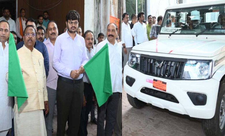 कृषि मंत्री रामविचार नेताम ने आज छत्तीसगढ़ बीज एवं कृषि विकास निगम परिसर, तेलीबांधा रायपुर में आयोजित एक संक्षिप्त कार्यक्रम में राज्य के 28 जिलों को नवीन बोलेरो वाहन की सौगात देने की साथ ही उन्हें हरी झंडी दिखाकर रवाना किया। इन नवीन वाहनों का उपयोग विभागीय अधिकारियों द्वारा विभागीय योजनाओं का फील्ड में प्रभावी क्रियान्वयन सुनिश्चित करने के साथ ही किसान हितैषी कार्यक्रमोें की मॉनिटरिंग के लिए किया जाएगा। इस अवसर पर संचालक कृषि राहुल देव सहित अन्य विभागीय अधिकारी उपस्थित थे।