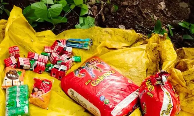 तौरेंगा के जंगलों में नक्सलियों की तलाश करते हुए, सुरक्षाबलों को राशन का बड़ा जखीरा मिला