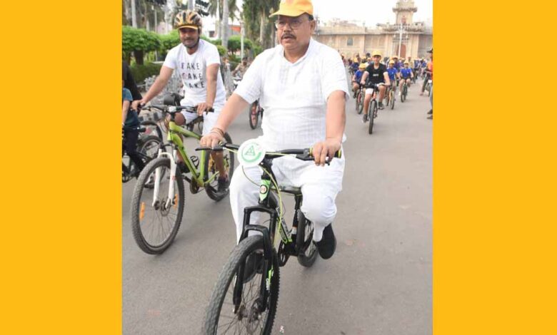 ऊर्जा मंत्री तोमर ने साइकिल चलाकर दिया पर्यावरण संरक्षण का संदेश