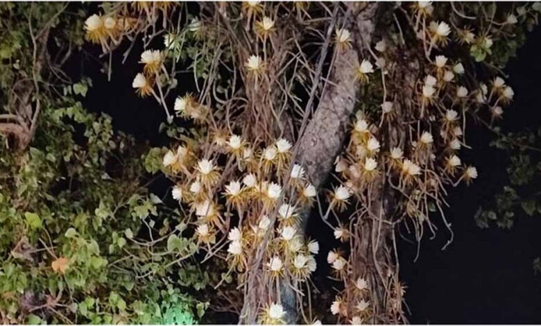 मुजफ्फरपुर जिले के कुढ़नी प्रखंड क्षेत्र के तुर्की-सरैया पथ स्थित छाजन के पास शुक्रवार देर रात एक अजीबो-गरीब घटना कौतूहल का विषय बन गई। यहां एक स्कूल के सामने स्थित पुराने पीपल के पेड़ की एक डाली पर अचानक सैकड़ों की संख्या में कमल जैसे फूल खिले दिखाई दिए।