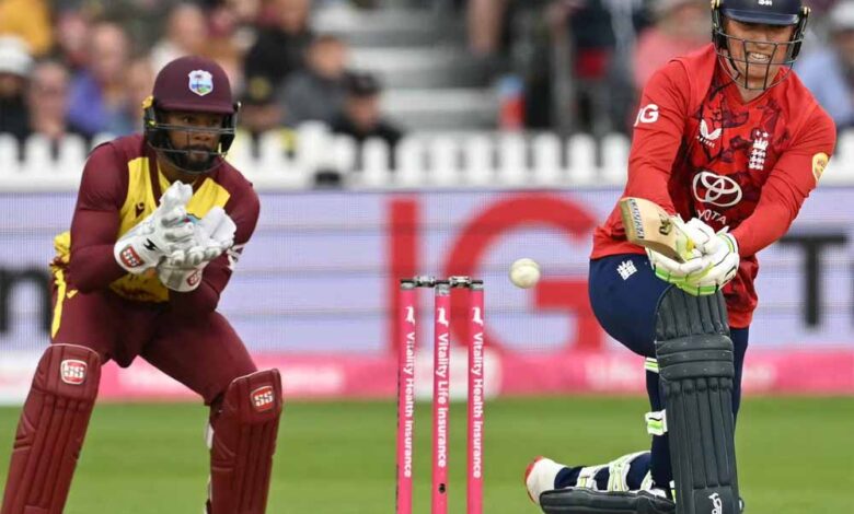 वेस्टइंडीज ने पहले बल्लेबाजी करते हुए निर्धारित 20 ओवर में 6 विकेट के नुकसान पर 196 रन का स्कोर खड़ा किया। कप्तान साई होप ने सबसे ज्यादा 49 और जॉनसन चार्ल्स ने 47 रन की पारी खेली। इंग्लैंड की तरफ से ल्यूक वुड ने सबसे ज्यादा 2 विकेट लिए। ब्राइडन कार्स, जैकब बेथेल और आदिल राशिद को 1-1 विकेट मिले।