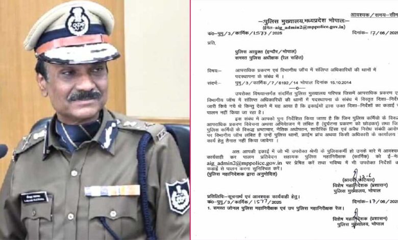 अब डीजीपी ने आपराधिक प्रकरण और विभागीय जांच में संलिप्त अधिकारियों और कर्मचारियों के विषय में आदेश जारी किये है, विशेष महानिदेशक (प्रशासन) पुलिस मुख्यालय भोपाल आदर्श कटिमार ने डीजीपी के आदेश पर पुलिस आयुक्त (इन्दौर/भोपाल) और प्रदेश के सभी पुलिस अधीक्षकों (रेल सहित) के लिए आदेश जारी किया है।