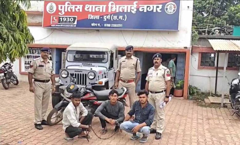 भिलाई नगर में चार पहिया वाहन चुराने वाले तीन आरोपी गिरफ्तार
