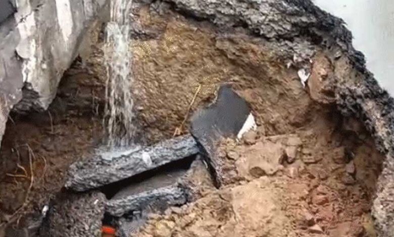 भोपाल में धंसी सड़क, एमपी नगर चौराहे के पास सड़क पर 10 फीट का गड्ढा
