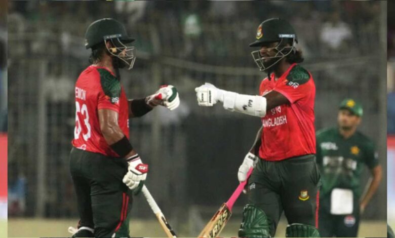 बांग्लादेश और पाकिस्तान के बीच तीन मैचों की टी20 सीरीज का पहला मुकाबला 20 जुलाई (रविवार) को ढाका के शेरे बांग्ला नेशनल स्टेडियम में खेला गया. इस मुकाबले में मेजबान बांग्लादेश ने पाकिस्तानी टी पर 7 विकेट से धमाकेदार जीत हासिल की. मुकाबले में बांग्लादेश ने 111 रनों का लक्ष्य 15.3 ओवर्स में ही हासिल कर लिया. टी20 सीरीज का अगला मुकाबला 22 जुलाई (मंगलवार) को इसी मैदान पर खेला जाएगा.