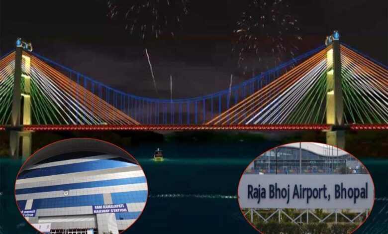 रानी कमलापति स्टेशन से एयरपोर्ट तक 17 किमी केबल ब्रिज: इस मेगा प्रोजेक्ट के तहत राजधानी को एयरपोर्ट से जोडऩे के लिए 17 किलोमीटर लंबा केबल ब्रिज बनाया जाएगा, जिसमें 2 किलोमीटर का हिस्सा बड़े तालाब क्षेत्र से होकर एलीवेटेड ब्रिज के रूप में गुजरेगा। मौजूदा समय में एयरपोर्ट तक पहुंचने में लगने वाली देरी और ट्रैफिक जाम की समस्या को देखते हुए यह ब्रिज शहर की जरूरत बन गया है। नितिन गडकरी ने इस प्रस्ताव को ‘भोपाल के लिए व्यावहारिक और समय की मांग’ बताते हुए स्वीकृति दी।