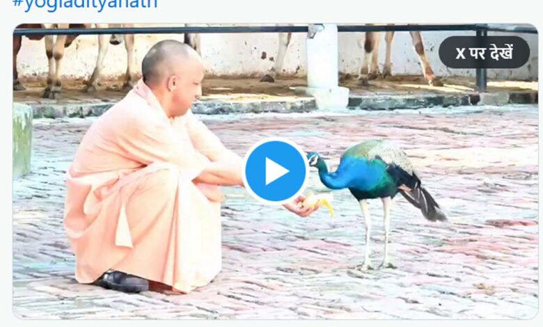 गोरखनाथ मंदिर के दौरे पर मुख्यमंत्री, योगी के हाथों में केला, सामने से दौड़कर आया मोर फिर…